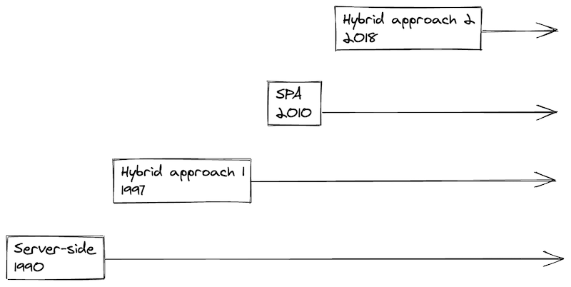 A small overview of web development approaches and when they appeared.